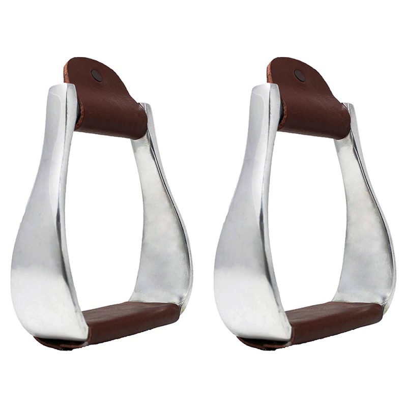 Made from durable aluminum. Features genuine brown leather tread. Has a 3" neck, 2 1/2" tread, and is 5" wide.