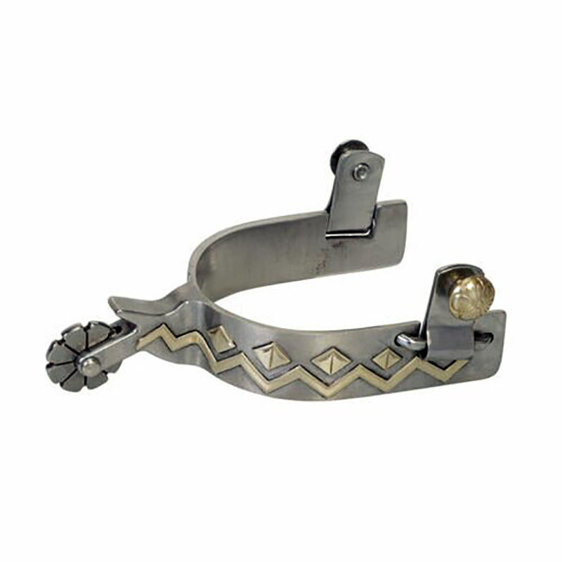 These men's spur straps feature a 1-1/2" shank1" band and 10 point replaceable rowel with cotter pinsSweet iron with German silver trim.