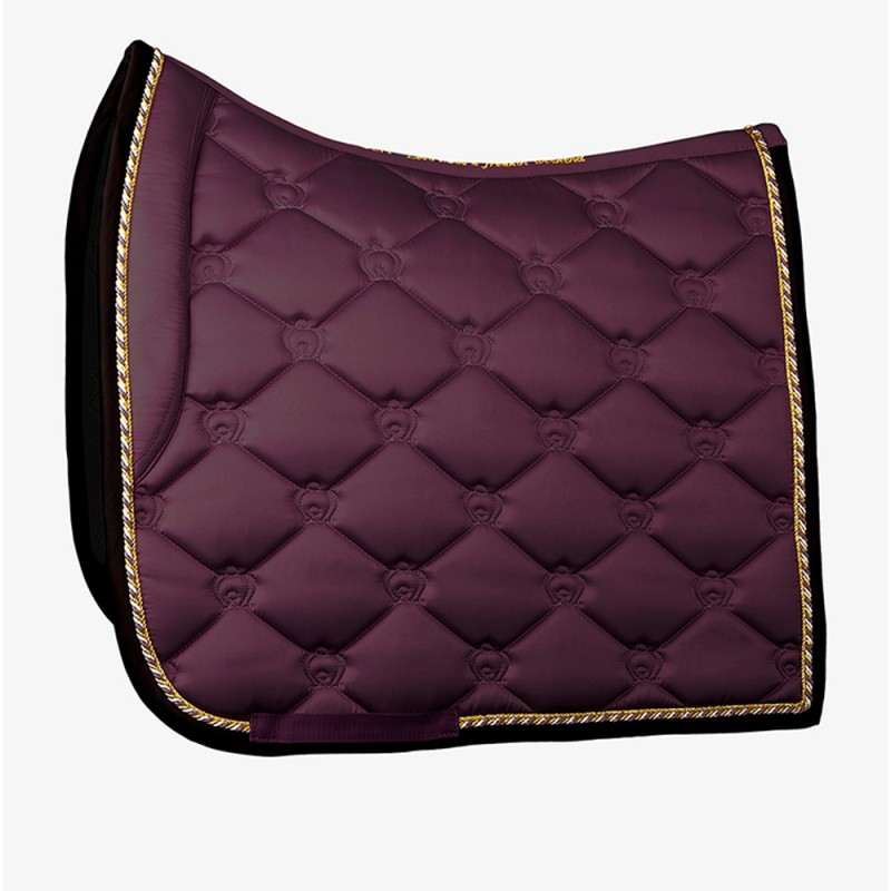 An anatomically designed saddle pad with double piping and quilted with PS of Sweden monogram. Luxurious, with details in gold. Unique quote embroidered on the back spine of the saddle pad.