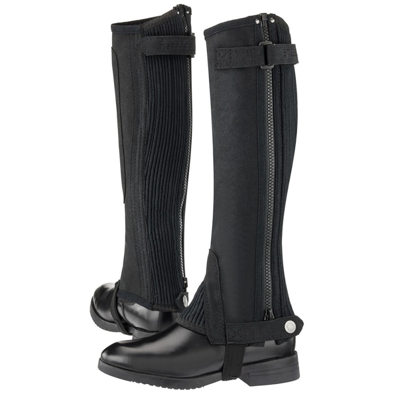 Les mini-chaps éprouvées STEEDS Ecolette sont en matière synthétique Amara résistante et se distinguent par leur forme anatomique et ajustée. La fermeture à glissière le long de la jambe permet de les mettre et les enlever rapidement. Les empiècements élastiques en matière côtelée sur le côté assurent une tenue souple et bien fixe. Les sous-pieds élastiques permettent de maintenir les mini-chaps correctement sur les bottines. Elles sont complétées d'un bouton-pression sur la fermeture à glissière.