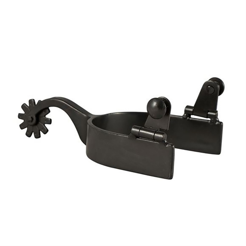 This all-around 10 point blunt end spur is a milder spur that communicates by applying pressure across a wider area of the horse's sides. The black finish blends nicely with boots and doesn't draw unnecessary attention to the foot while in the ring. Over time and exposure to weather, the blackened finish will rust to give the spur an aged, well-worn look.